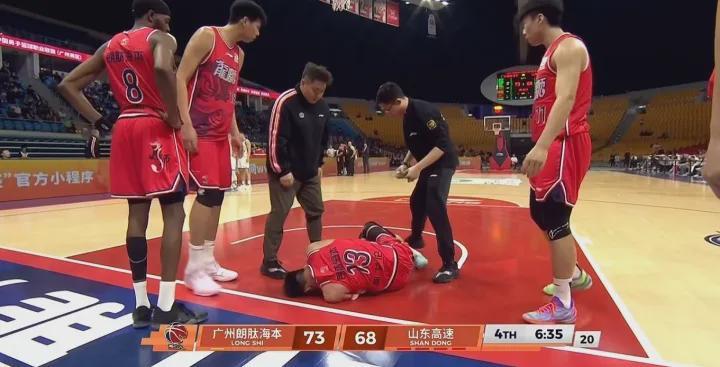广州队VS山东队的补赛,进行到末节时郭艾伦带球快攻反击对抗后倒地,抱着左膝久久不能起身,之后被担架抬出场外治疗,该场比赛他替补出战约16分钟,投篮7中3,三分3中1得到7分1板2助2失误,正负值+3。